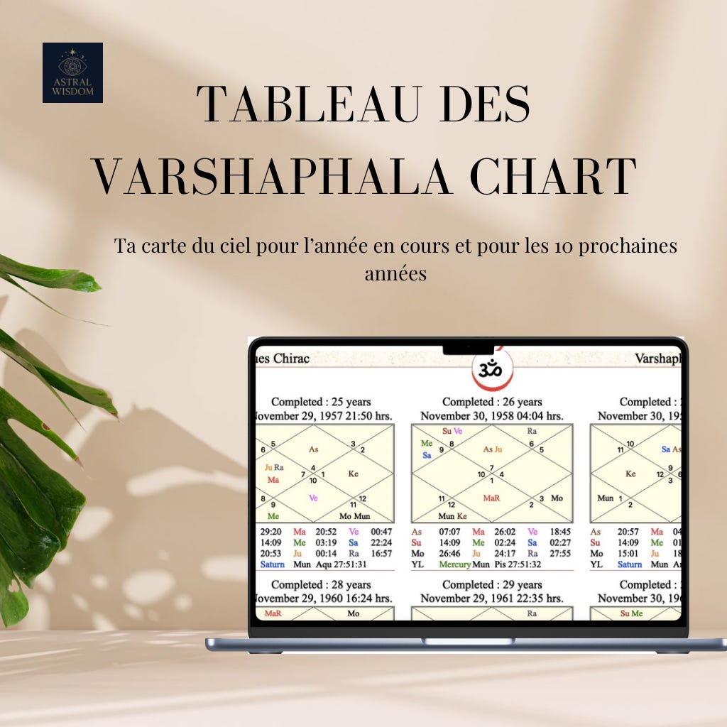 Je vous ai parlé précédemment du thème annuel (Varshaphala), qui permet de mieux vous situer et de comprendre les énergies qui vont vous accompagner tout au long de l’année 2026.